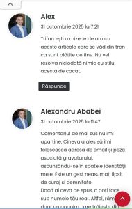 Ce s-a întâmplat de fapt? A fost folosită adresa mea personală de e-mail și poza asociată gravatarului meu, pentru a lăsa comentarii care nu-mi aparțin. O formă mică de impostură digitală, dar una care spune foarte multe despre caracterul celui care a făcut-o.